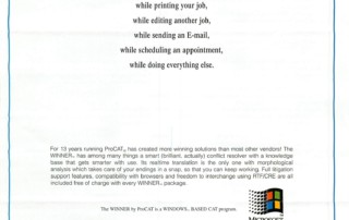 August 1994, San Francisco, CA. ProCAT proudly introduced Winner 1.0, industry's first Windows-based CAT software. [...]